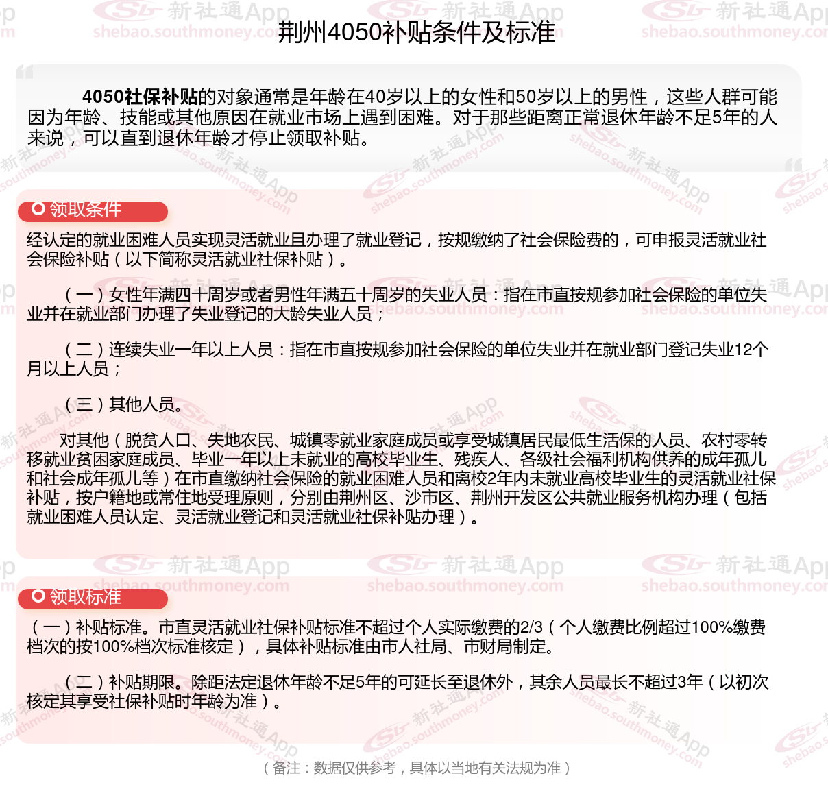 1、荆州4050社保补贴申请条件