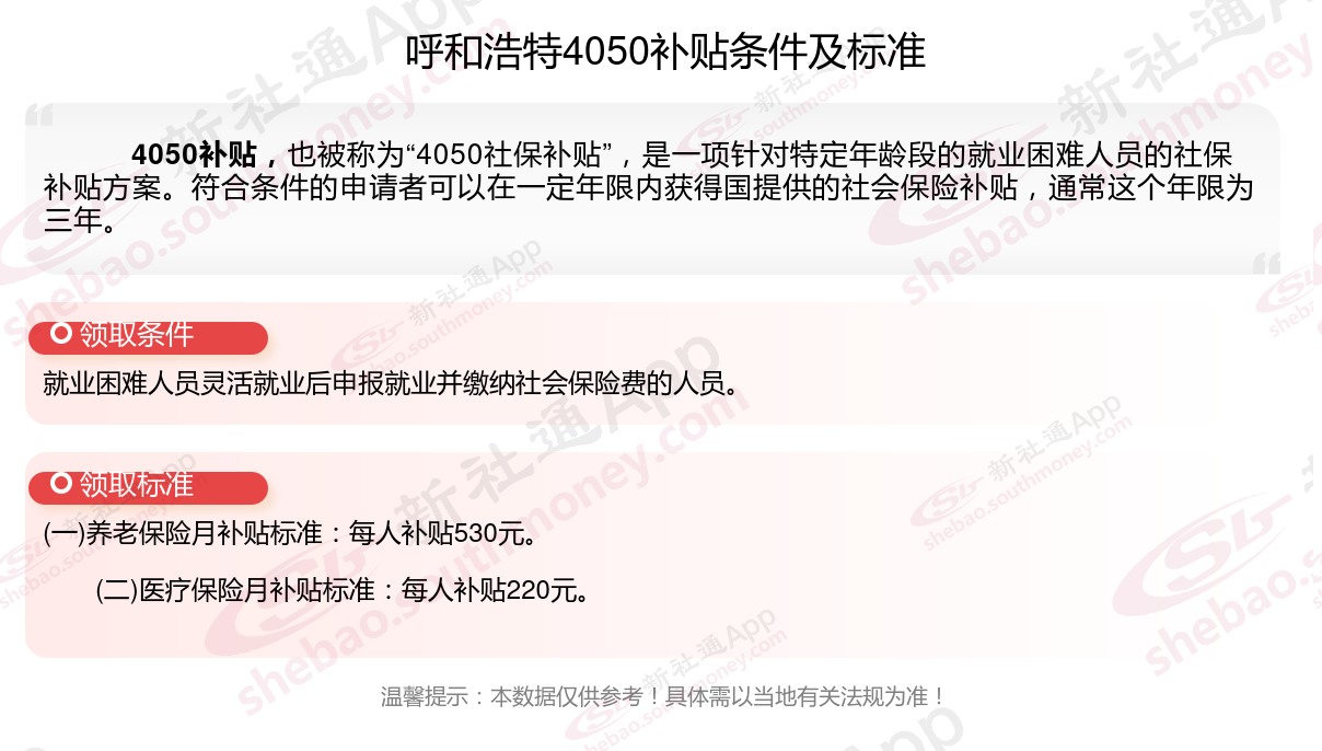 一、2023-2024年呼和浩特4050社保补贴标准及条件