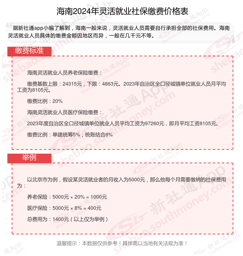 二、海南2024年灵活就业社保缴费基数及比例最新消息