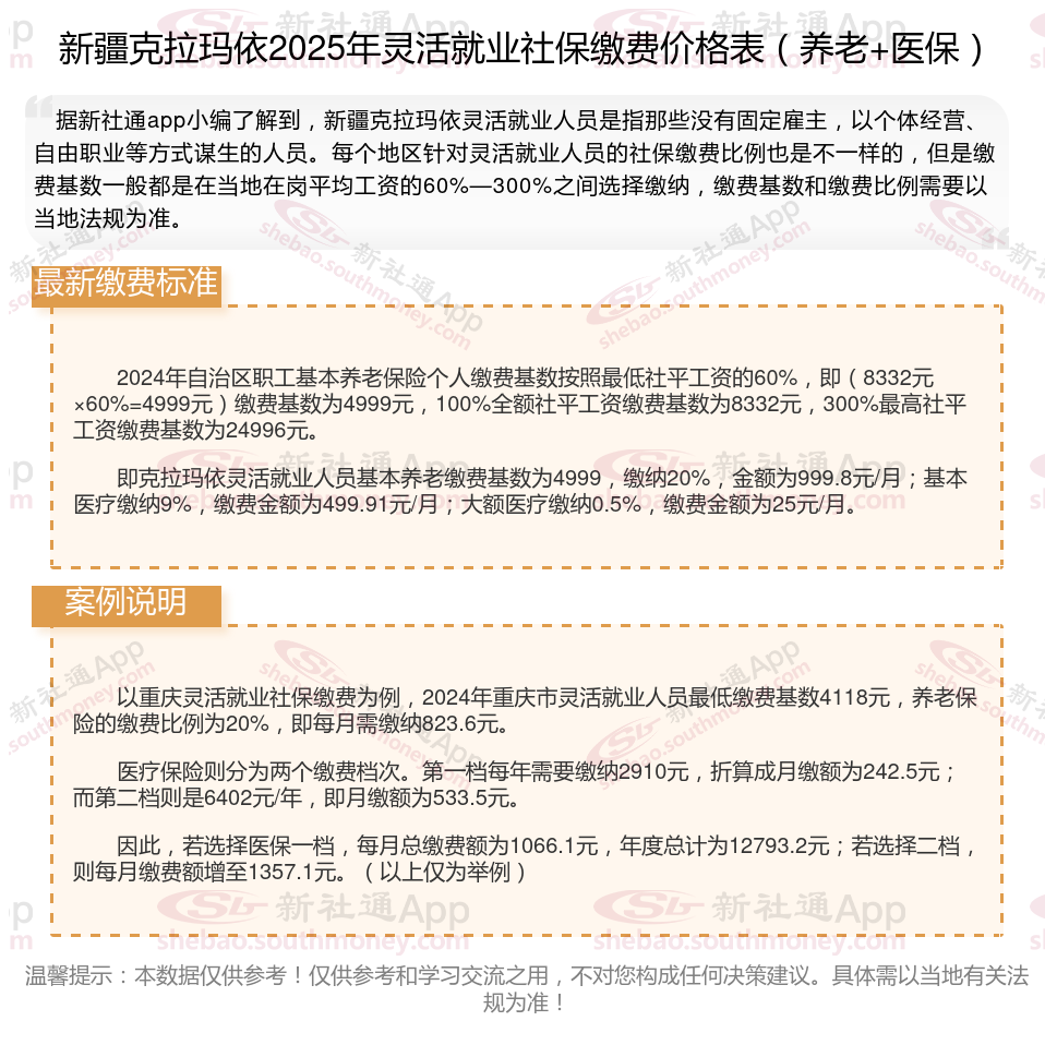 二、2025年新疆克拉玛依灵活就业社保缴费基数及比例最新消息