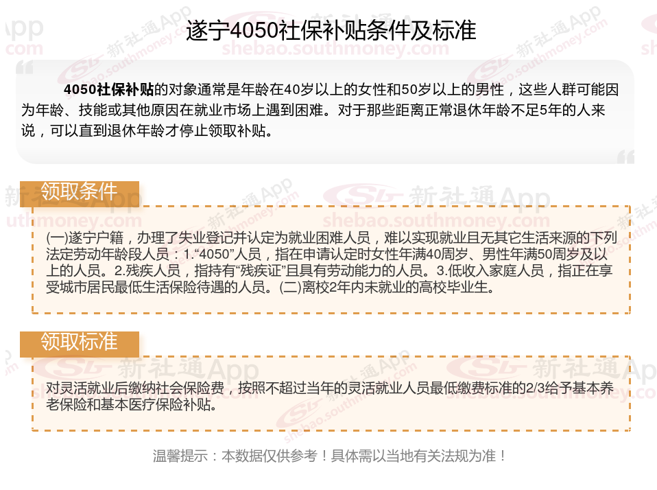 二、2025年遂宁4050社保补贴标准,最新领取条件来了