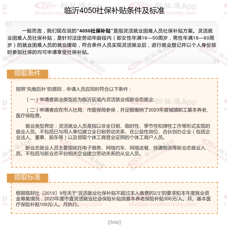 一、2023-2024年临沂4050社保补贴标准及条件