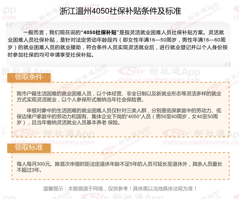 1、浙江温州4050社保补贴申请条件