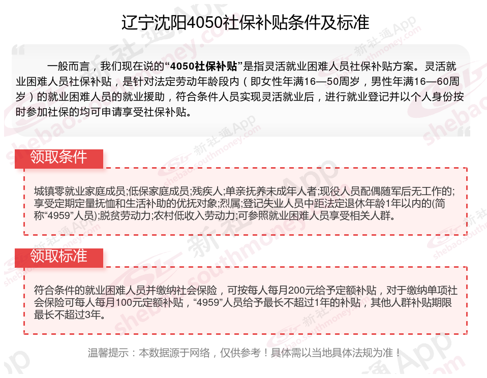 一、2023-2024年辽宁沈阳4050社保补贴标准及条件