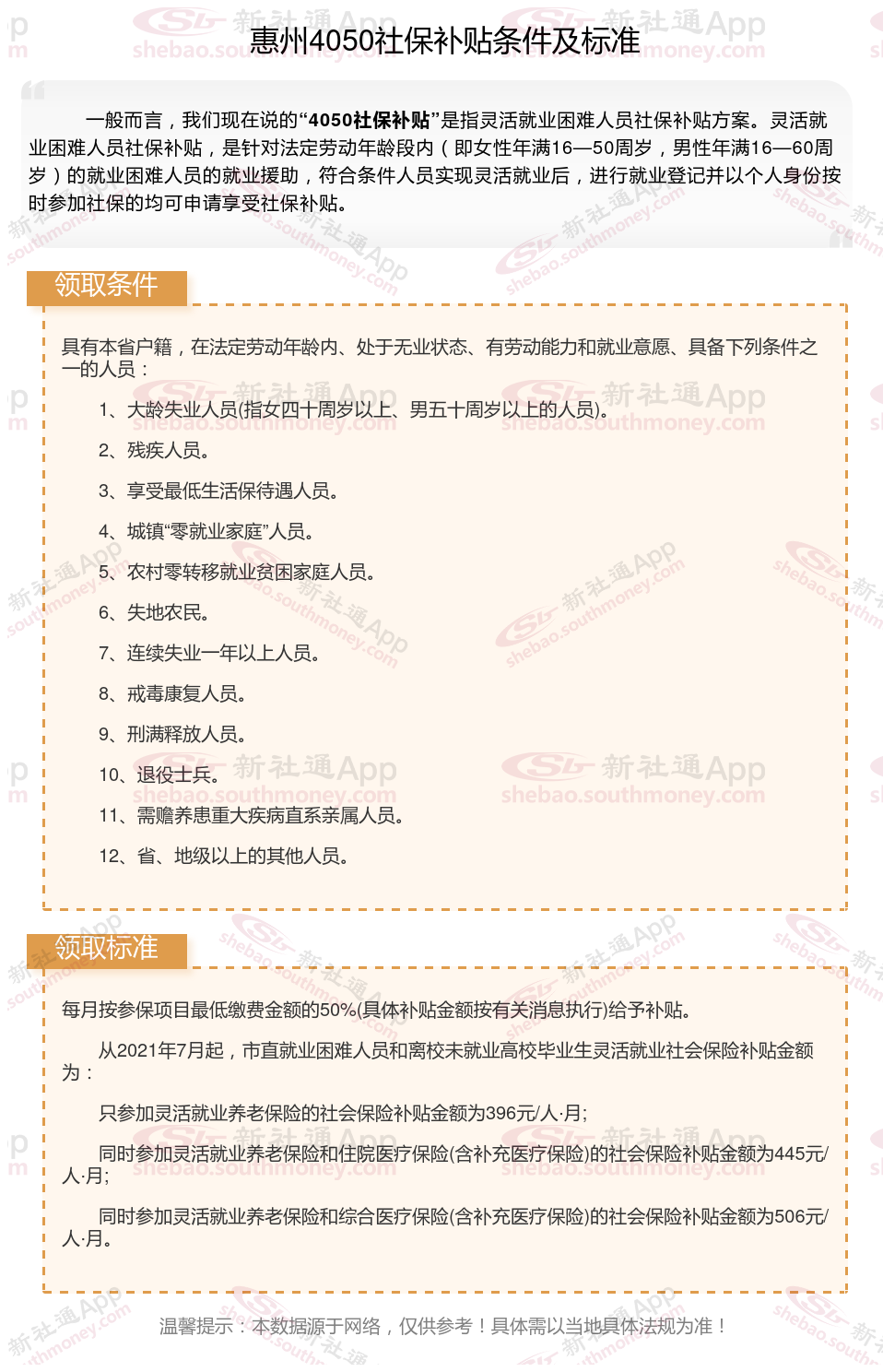 二、2023-2024年惠州4050社保补贴标准及条件
