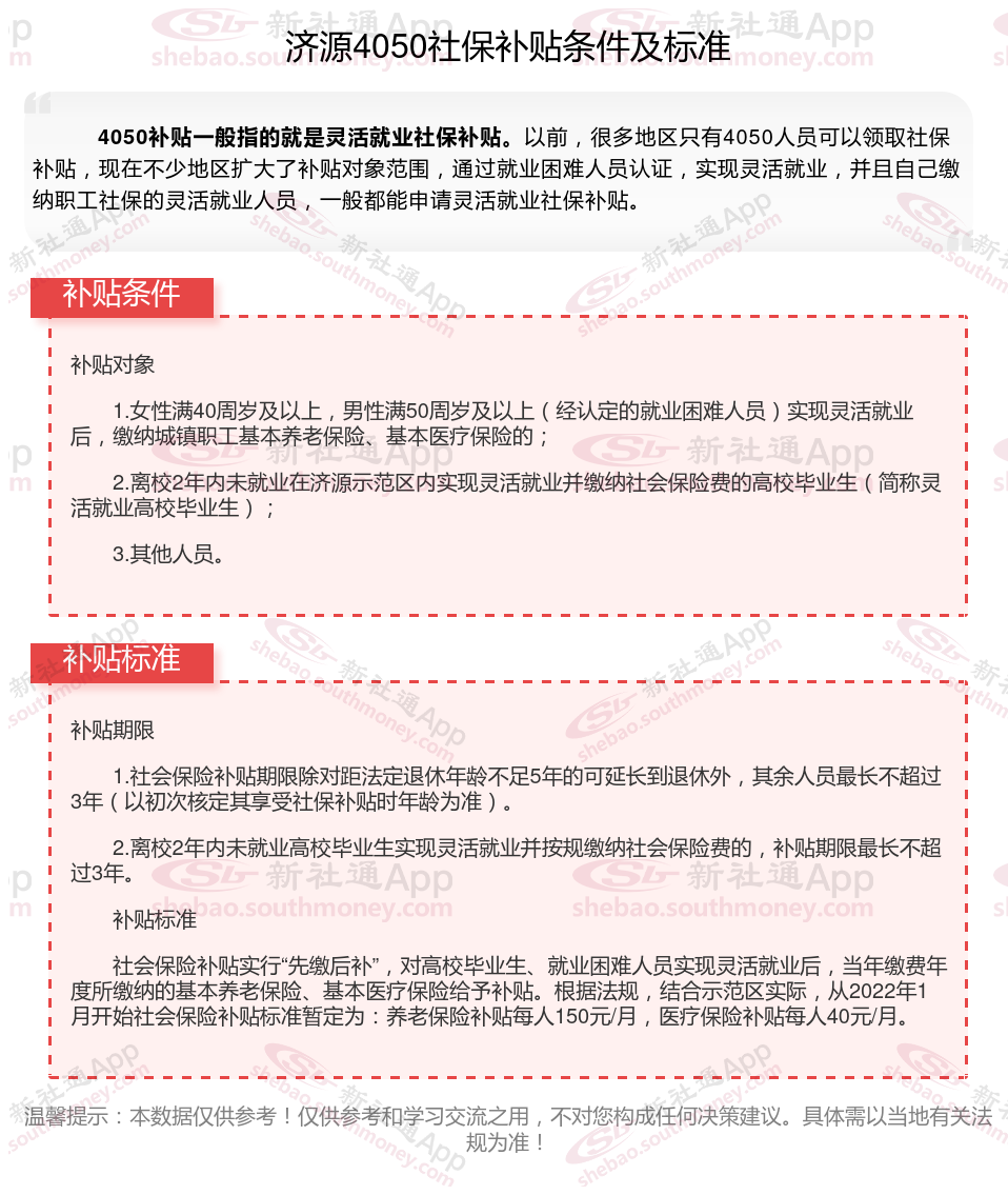 二、2023-2024年济源4050社保补贴标准及条件