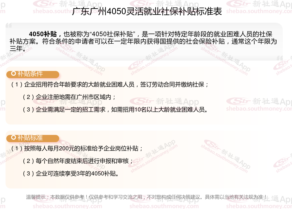 二、2023-2024年广东广州4050社保补贴标准及条件