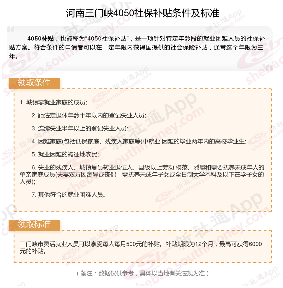 二、2025年河南三门峡4050社保补贴标准及条件(4050社保补贴多少钱?)