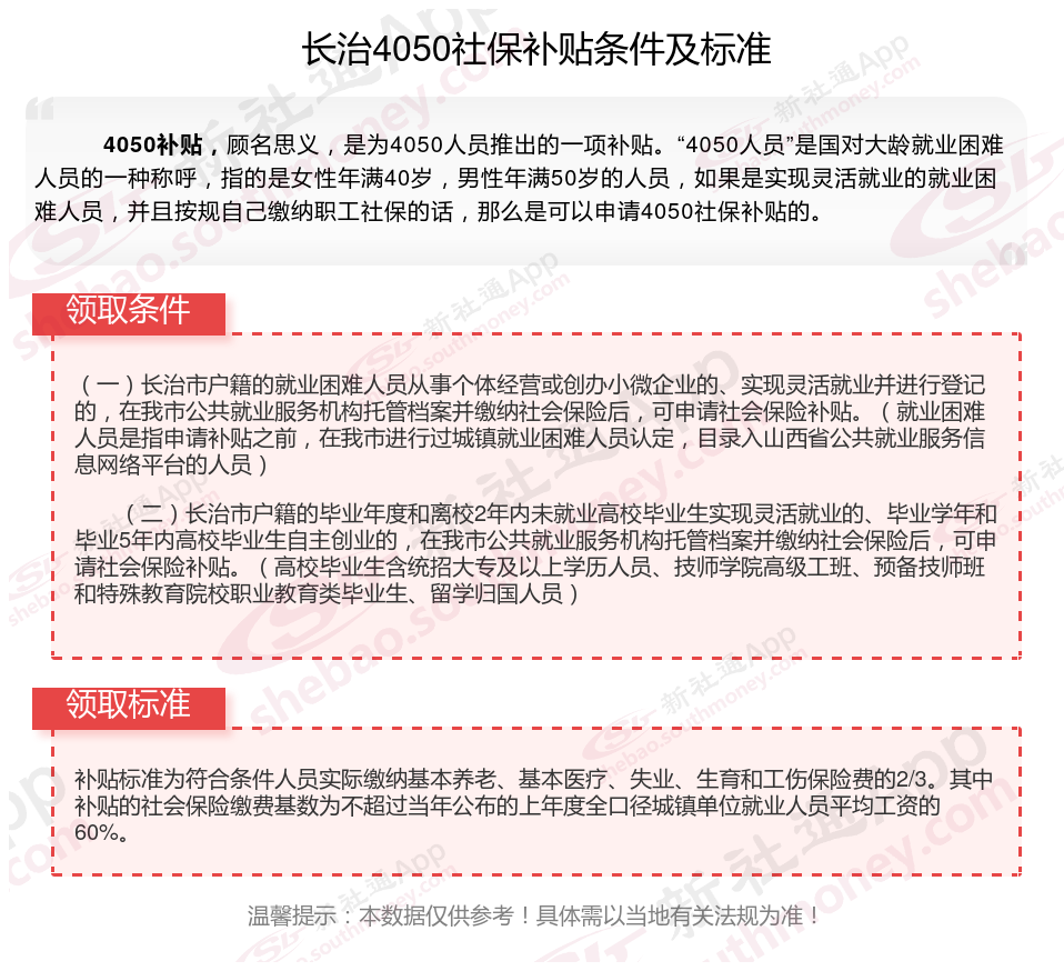二、2025年长治4050社保补贴标准是多少?条件是什么?