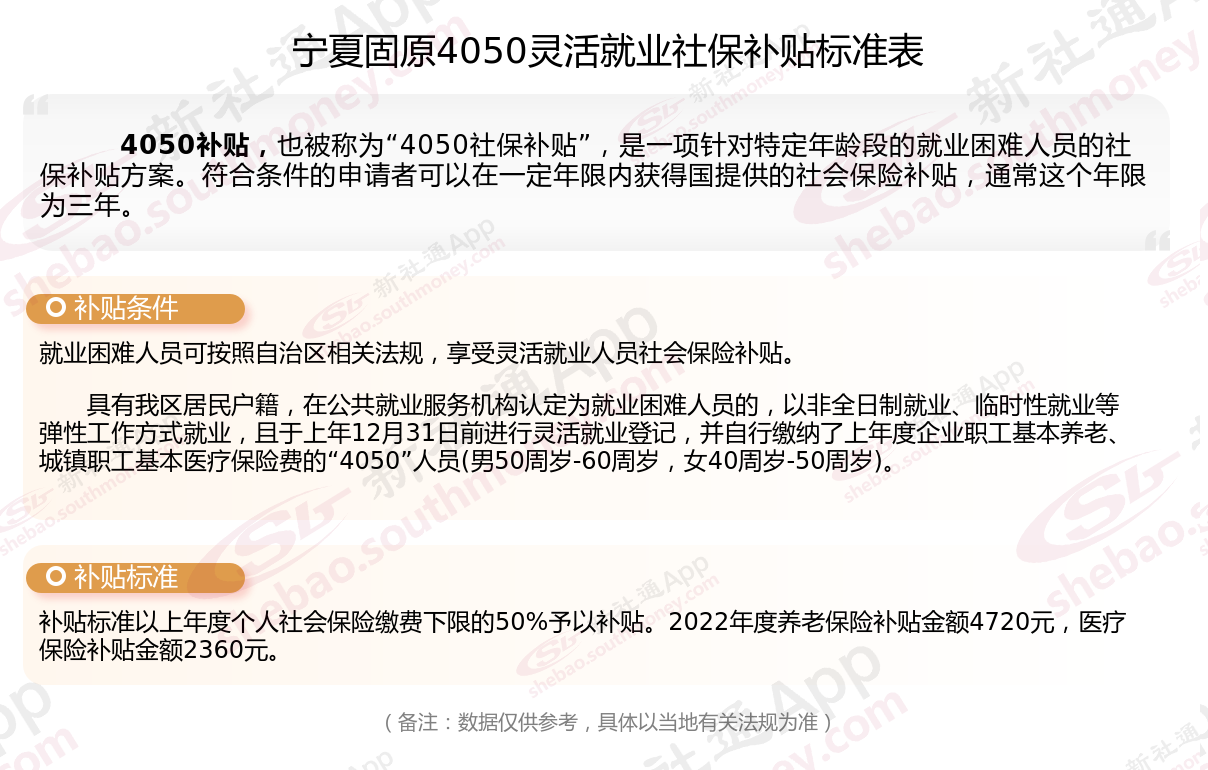 二、2025年宁夏固原4050社保补贴标准及条件(4050社保补贴多少钱?)