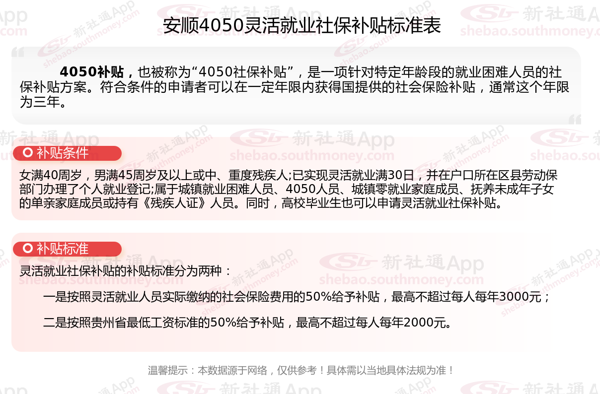 二、2025年安顺4050社保补贴标准及条件(4050社保补贴多少钱?)