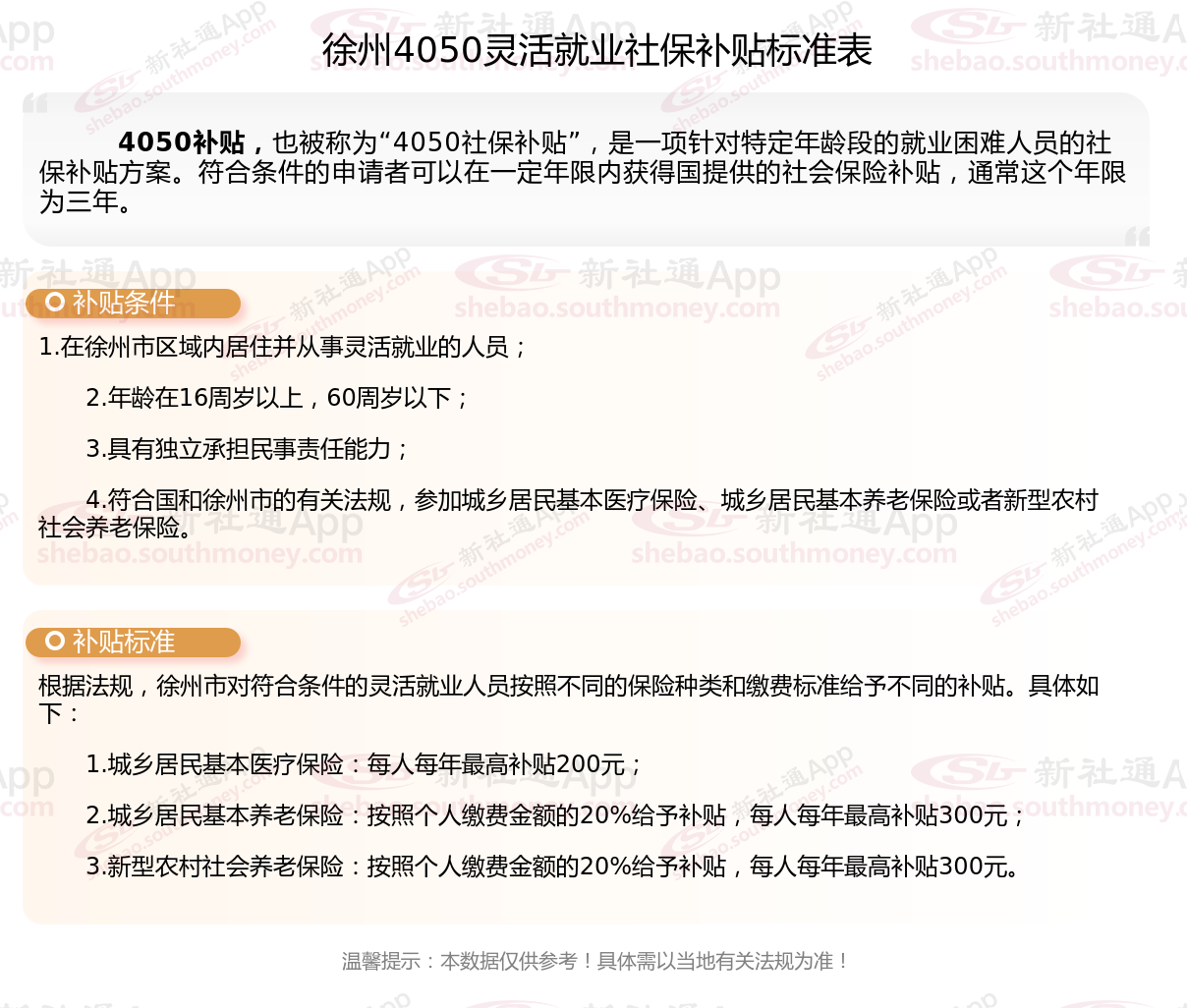 二、2025年徐州4050社保补贴标准及条件(4050社保补贴多少钱?)