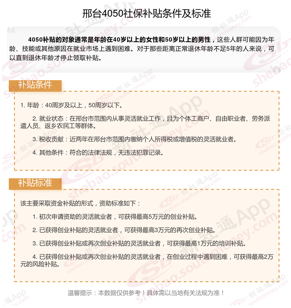 二、2025年邢台4050社保补贴标准及条件(4050社保补贴多少钱?)