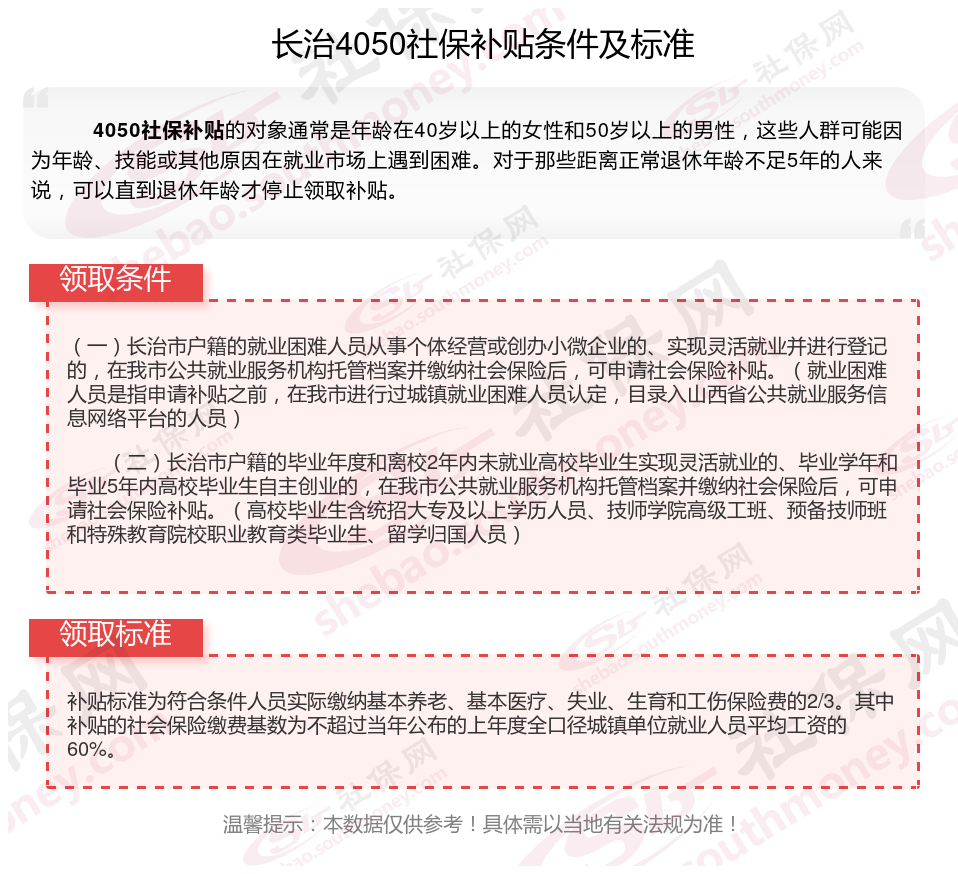 2024长治4050补贴主要针对的是年龄在40岁以上的女性和50岁以上的男性,这些人群通常因为年龄较大而面临就业困难。