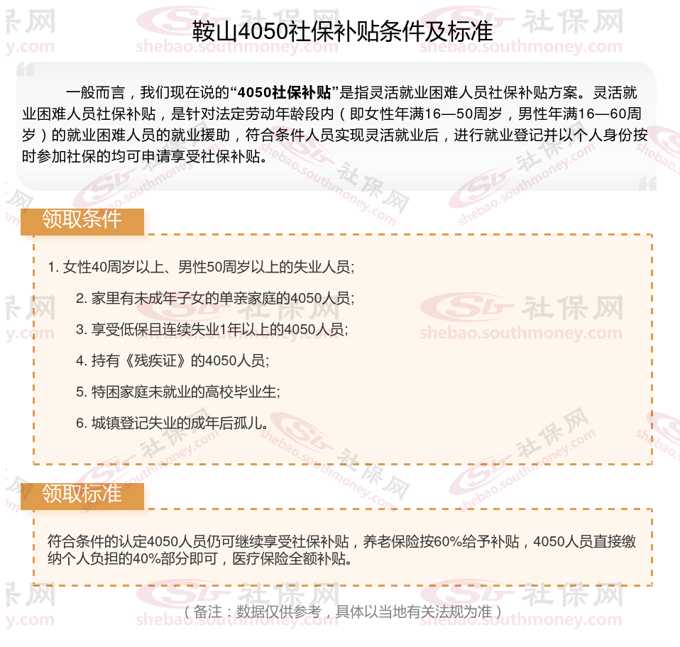 二、鞍山4050社保补贴标准及条件2023-2024年