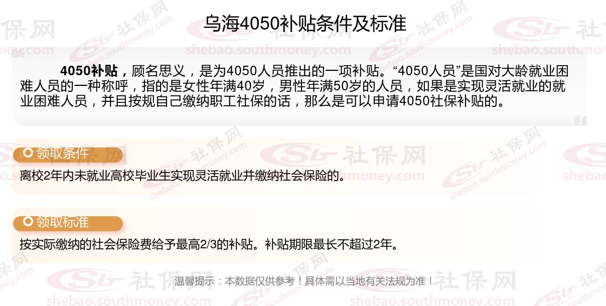 2024乌海4050补贴主要针对的是年龄在40岁以上的女性和50岁以上的男性,这些人群通常因为年龄较大而面临就业困难。