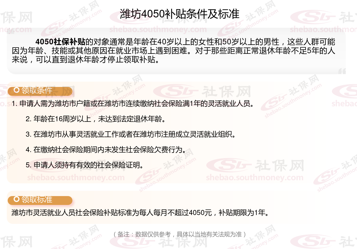 二、潍坊灵活就业4050社保补贴标准及条件是什么
