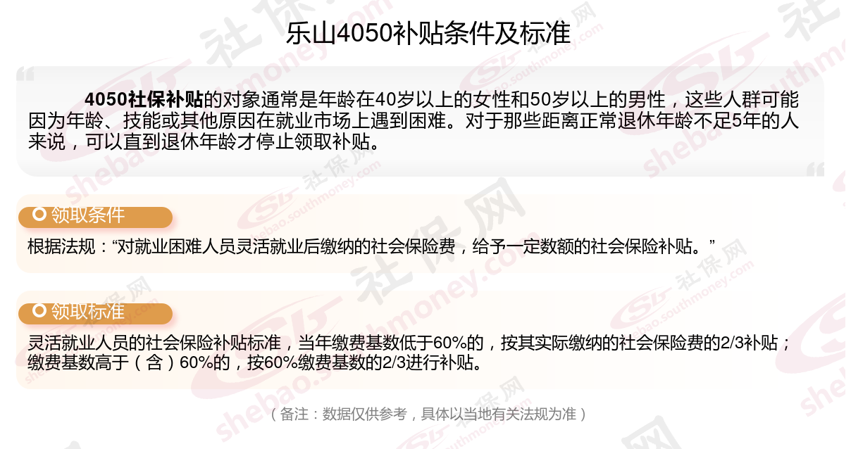 二、乐山4050社保补贴标准及条件2023-2024年