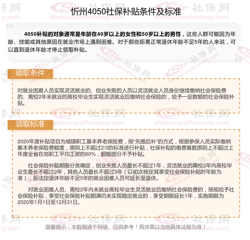 2024忻州4050补贴主要针对的是年龄在40岁以上的女性和50岁以上的男性,这些人群通常因为年龄较大而面临就业困难。