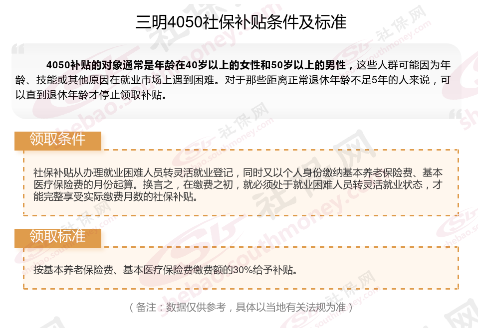 一、2023-2024年三明灵活就业4050社保补贴标准和条件是什么