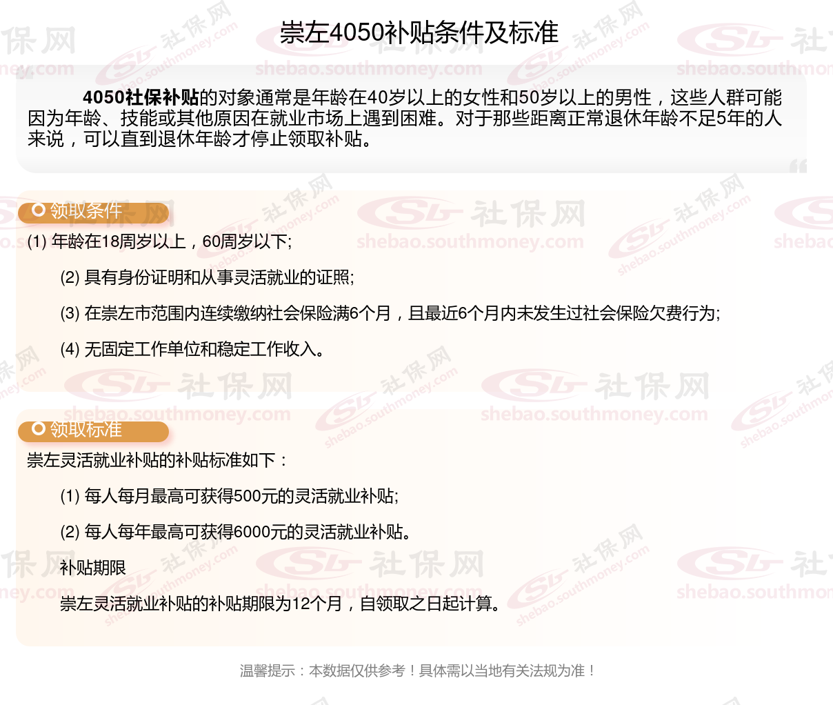 2024崇左灵活就业4050社保补贴是一项面向特定年龄段的就业困难人群的社会保险补贴。