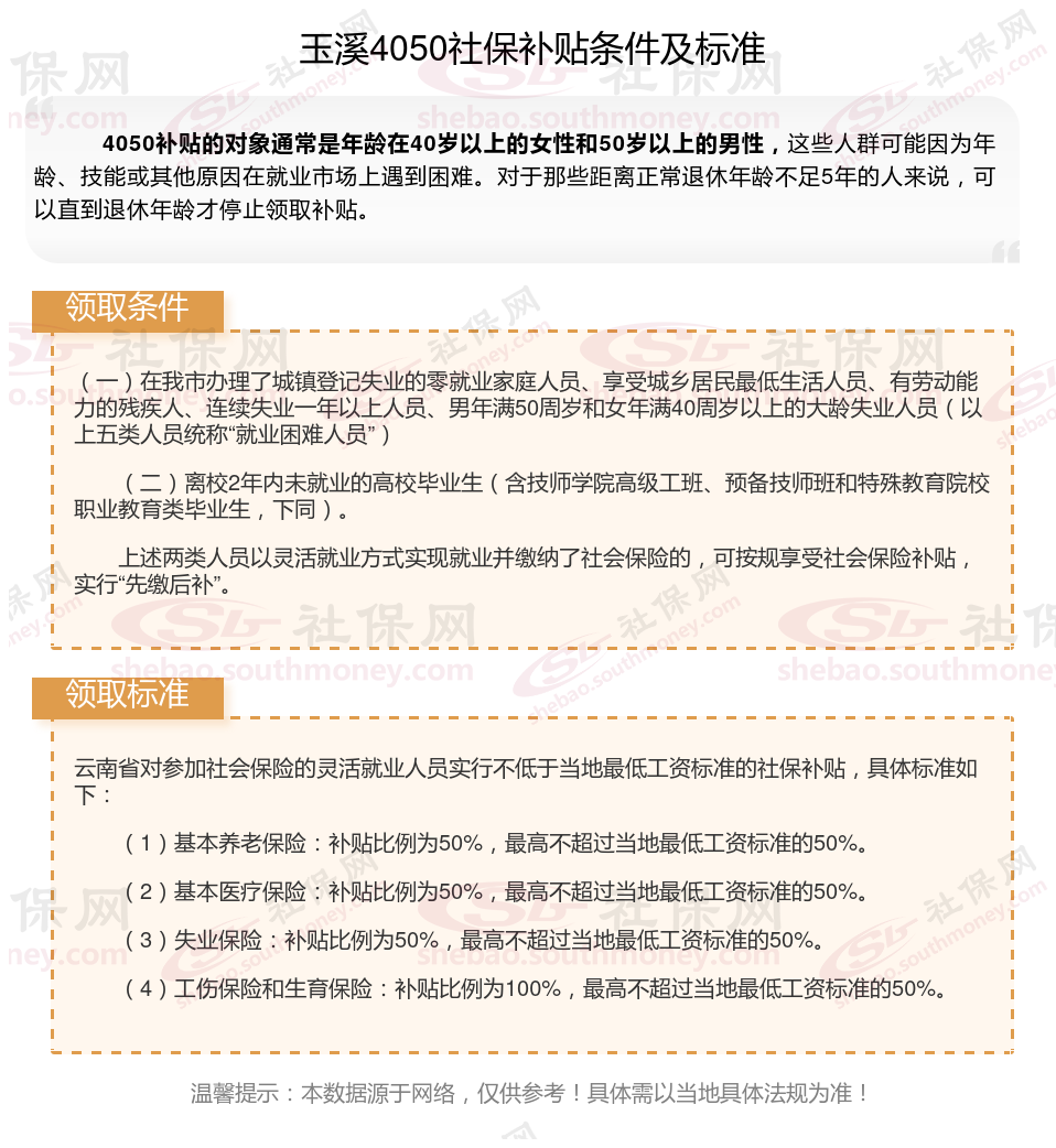 2024玉溪灵活就业4050社保补贴是一项面向特定年龄段的就业困难人群的社会保险补贴。