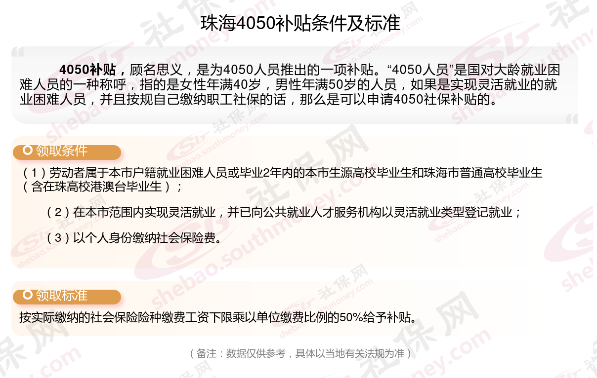 2024珠海灵活就业4050社保补贴是一项面向特定年龄段的就业困难人群的社会保险补贴。