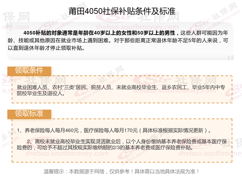 2024莆田灵活就业4050社保补贴是一项面向特定年龄段的就业困难人群的社会保险补贴。
