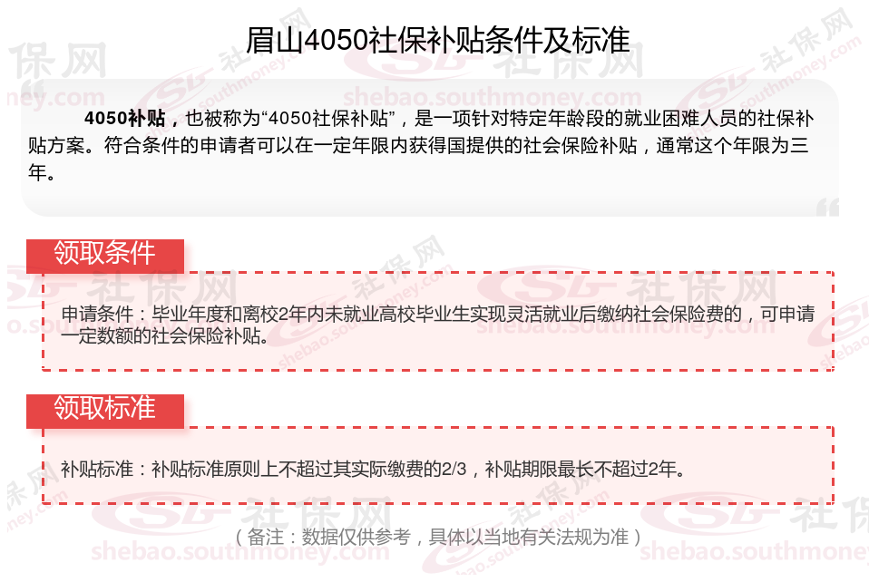 二、眉山4050社保补贴标准及条件2023-2024年,最新如下