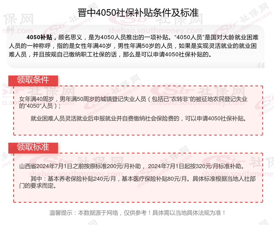 2024晋中灵活就业4050社保补贴是一项面向特定年龄段的就业困难人群的社会保险补贴。