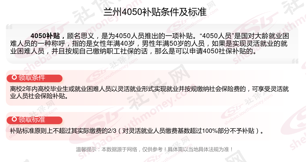 一、兰州4050社保补贴标准及条件2023-2024年