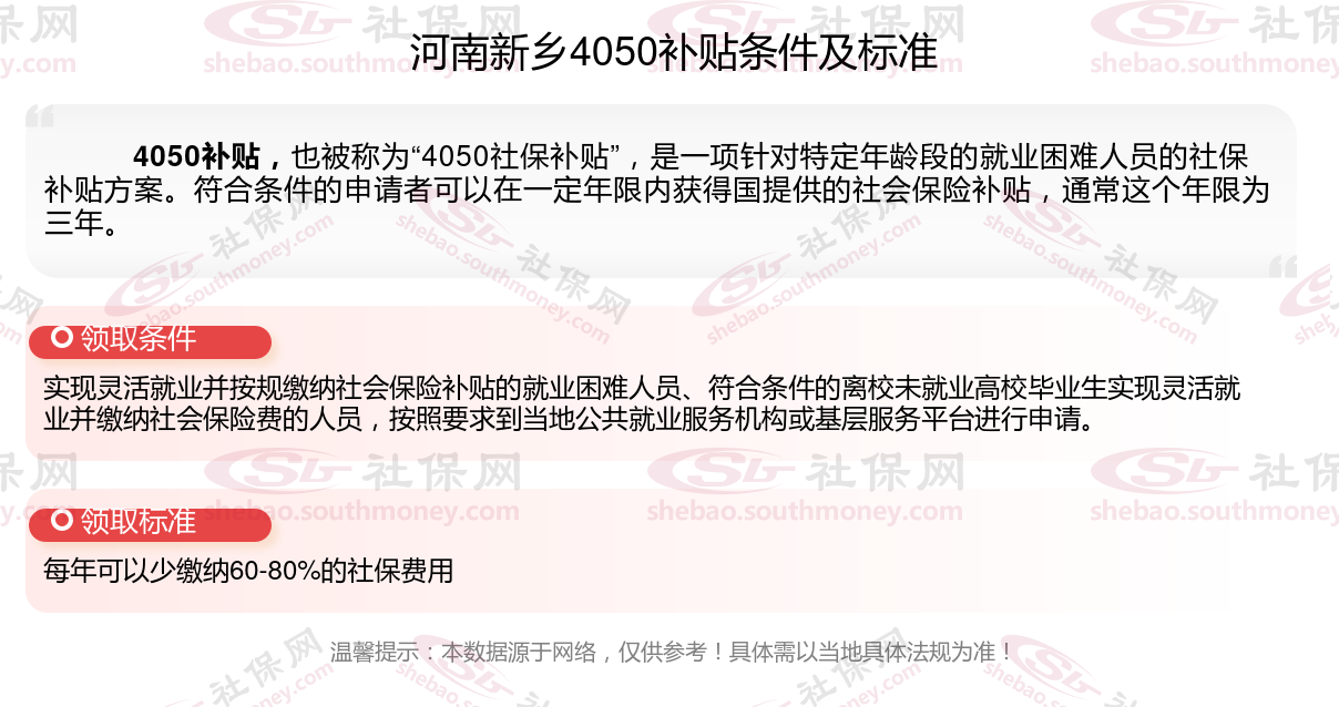 二、河南新乡4050社保补贴标准及条件2023-2024年,最新如下