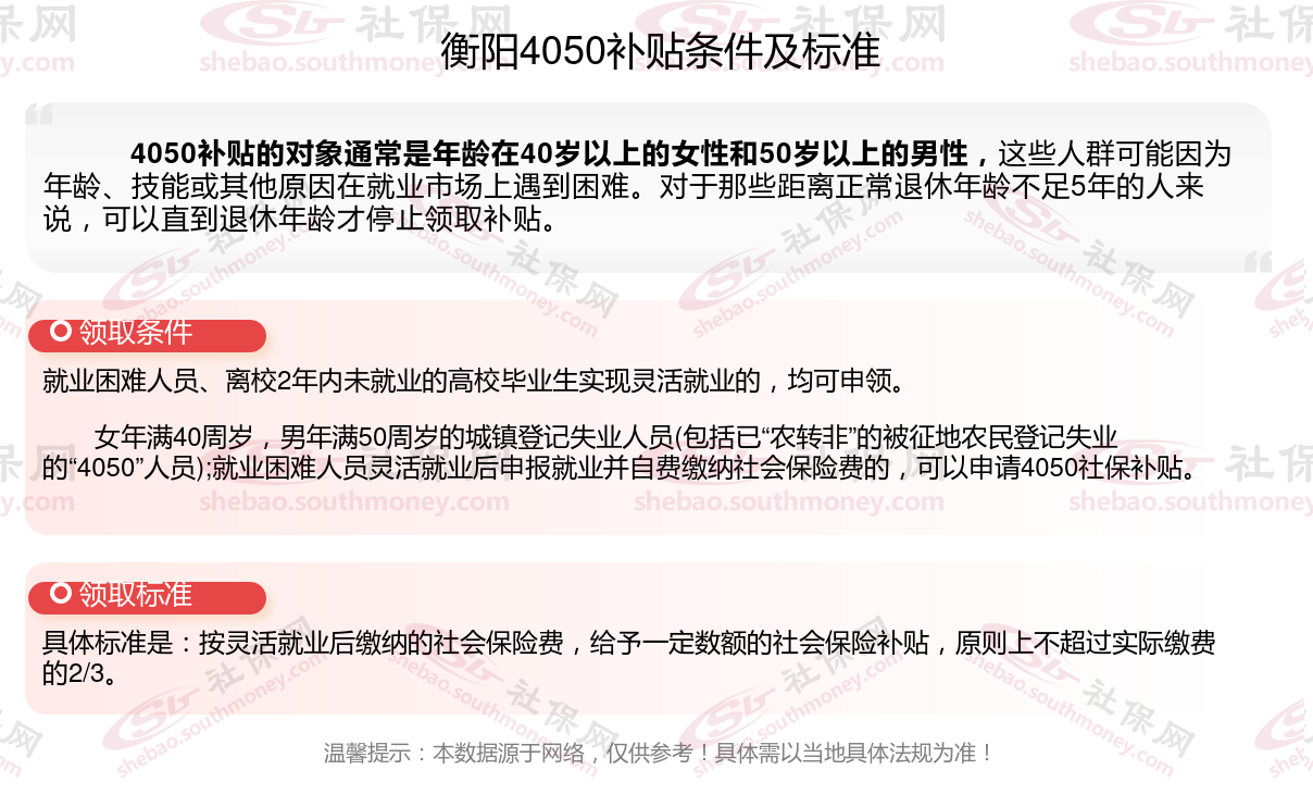 一、衡阳4050社保补贴标准及条件2023-2024年