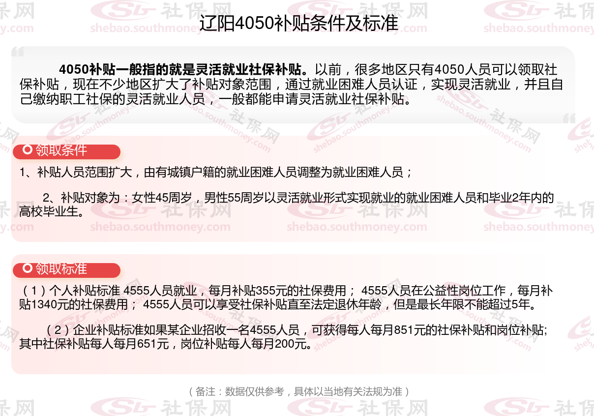一、辽阳4050社保补贴标准及条件2023-2024年