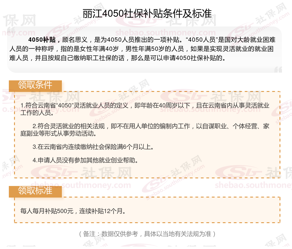 2024丽江灵活就业4050社保补贴是一项面向特定年龄段的就业困难人群的社会保险补贴。