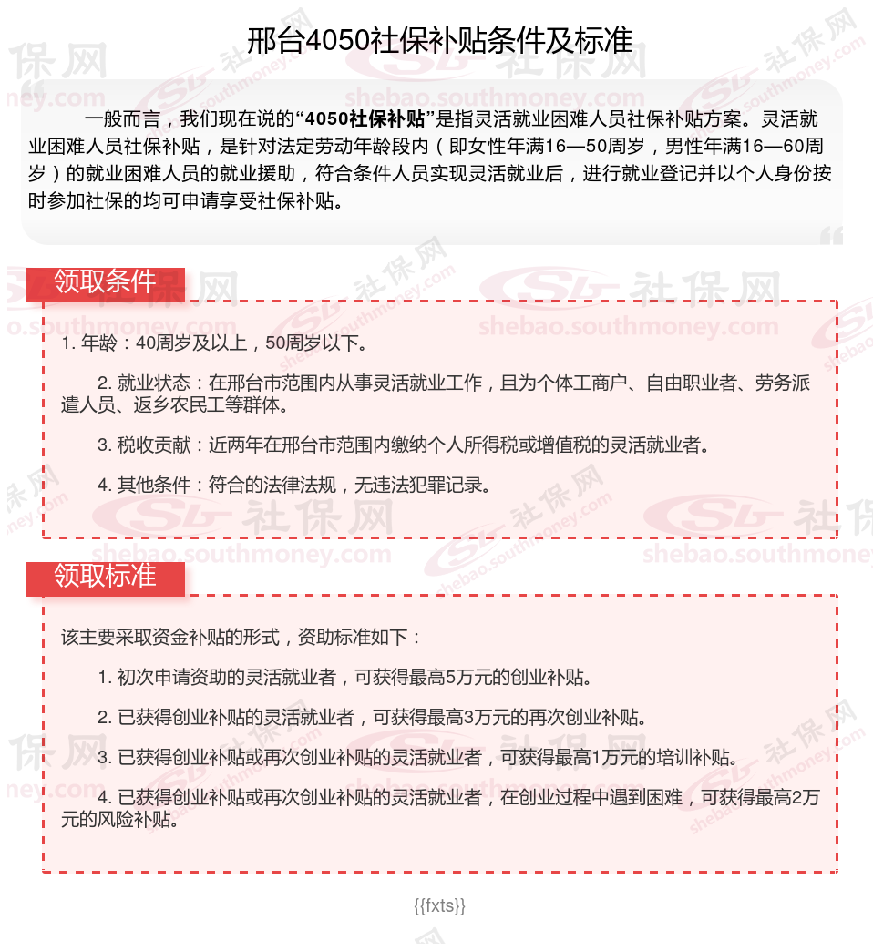 2024邢台4050补贴主要针对的是年龄在40岁以上的女性和50岁以上的男性,这些人群通常因为年龄较大而面临就业困难。