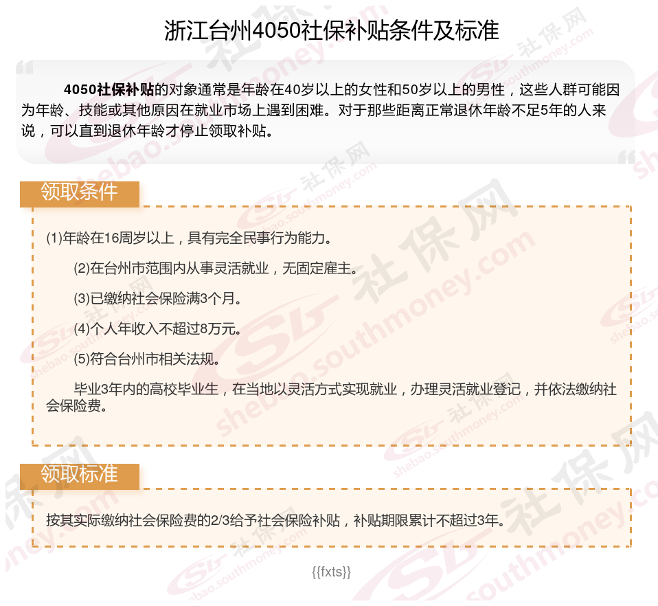 二、浙江台州灵活就业4050社保补贴标准及条件是什么