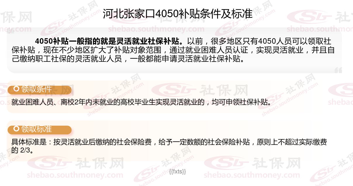 2024河北张家口灵活就业4050社保补贴是一项面向特定年龄段的就业困难人群的社会保险补贴。