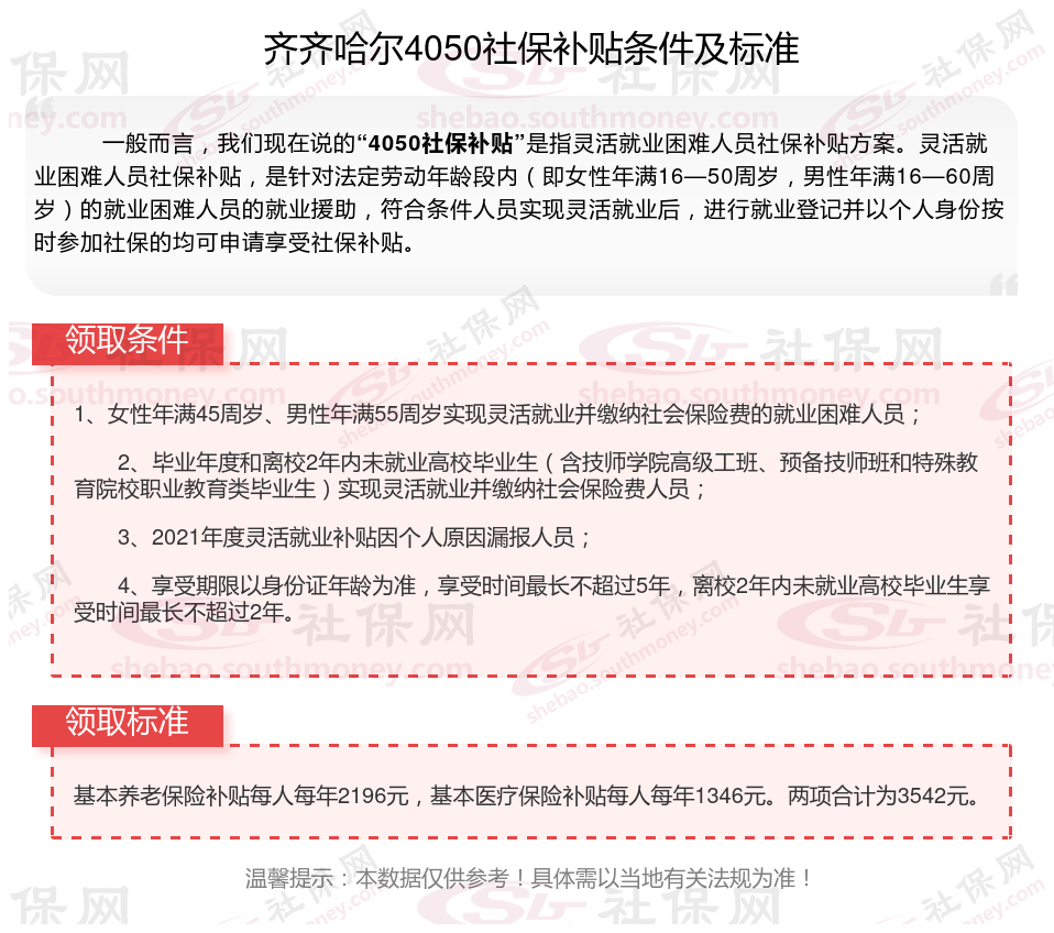 二、齐齐哈尔灵活就业4050社保补贴标准及条件是什么
