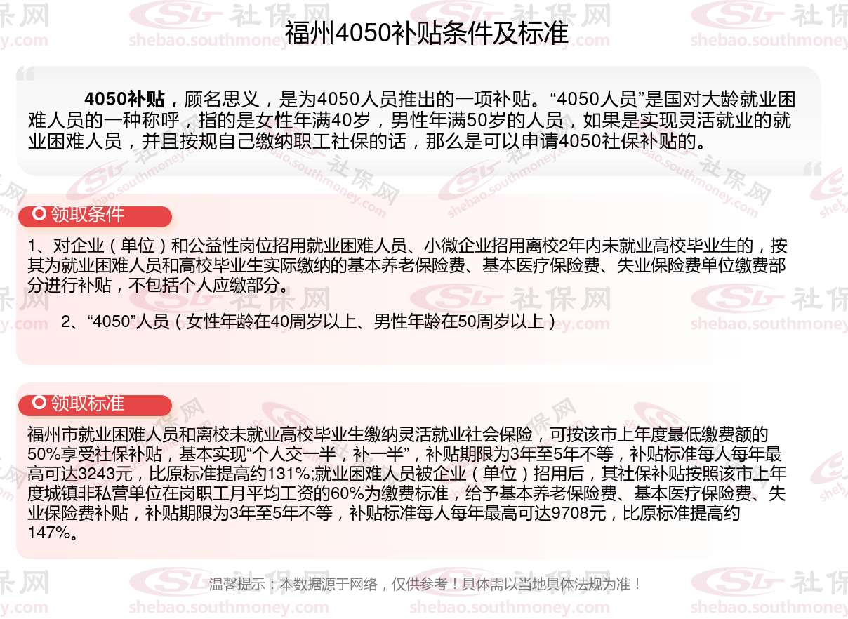2024福州4050补贴主要针对的是年龄在40岁以上的女性和50岁以上的男性,这些人群通常因为年龄较大而面临就业困难。