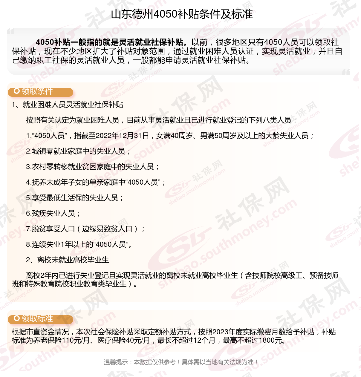 2024山东德州灵活就业4050社保补贴是一项面向特定年龄段的就业困难人群的社会保险补贴。