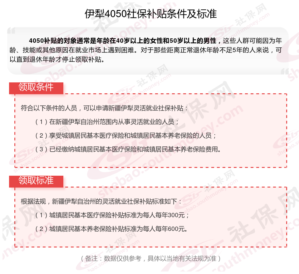 二、伊犁灵活就业4050社保补贴标准及条件是什么