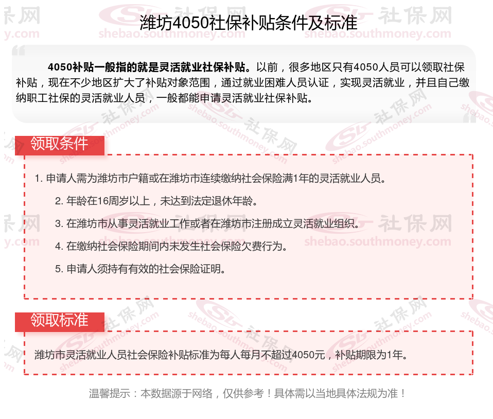 一、潍坊4050社保补贴标准及条件2023-2024年