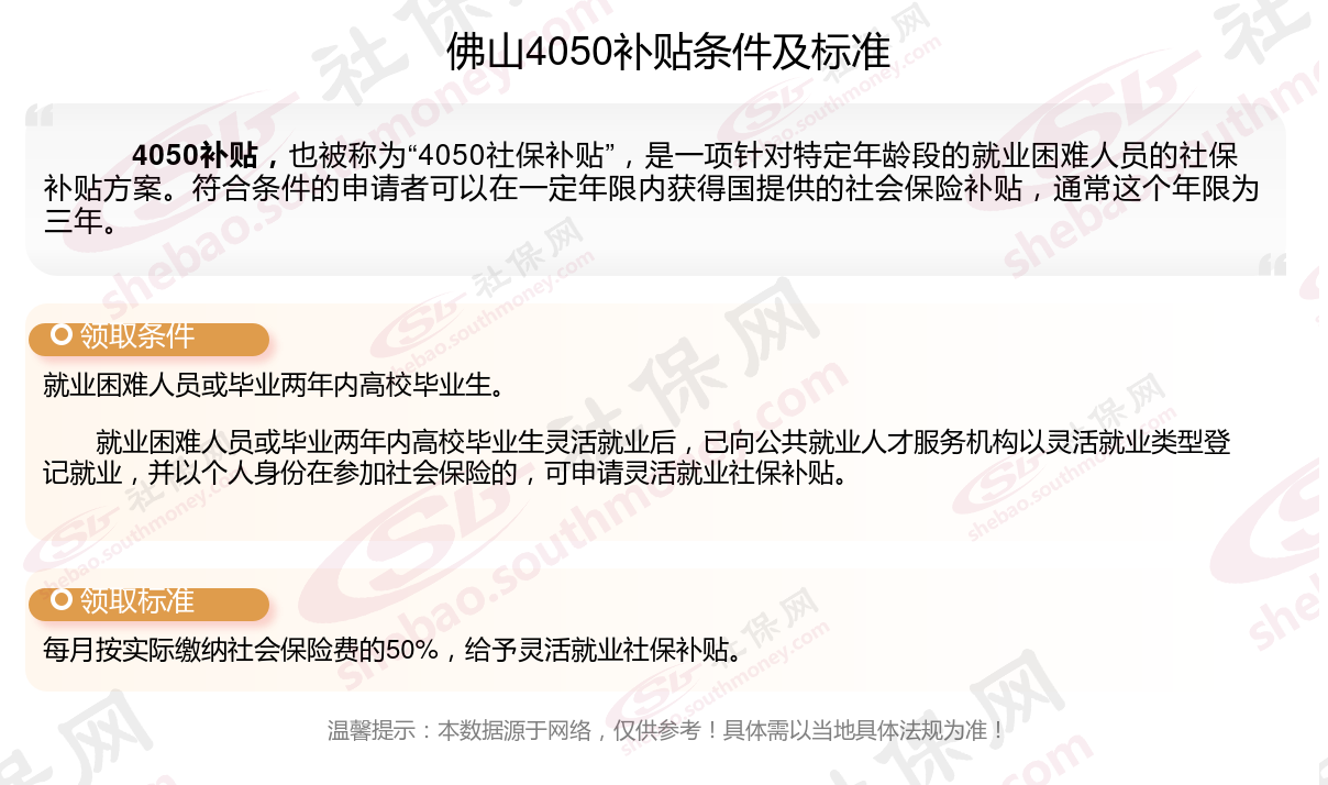 2024佛山4050补贴主要针对的是年龄在40岁以上的女性和50岁以上的男性,这些人群通常因为年龄较大而面临就业困难。