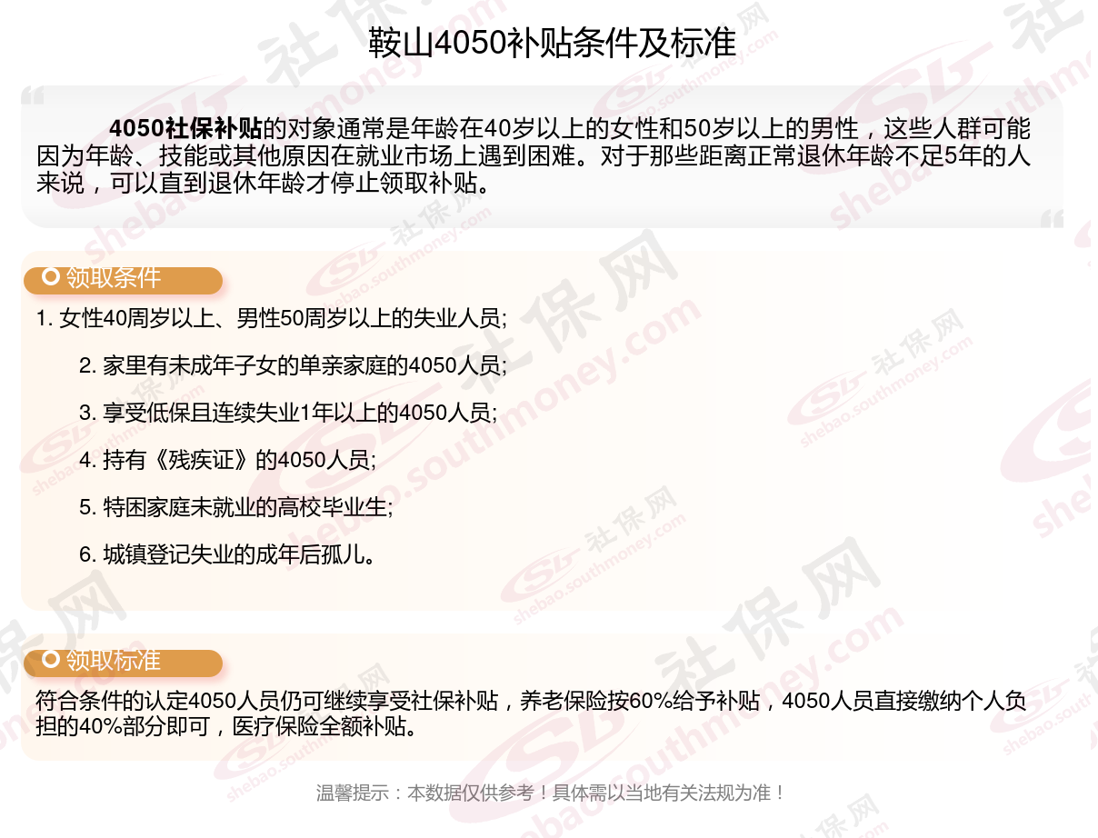二、鞍山4050社保补贴标准及条件2023-2024年,最新如下