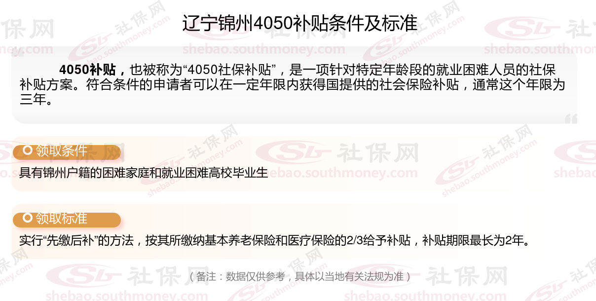 2024辽宁锦州4050补贴主要针对的是年龄在40岁以上的女性和50岁以上的男性,这些人群通常因为年龄较大而面临就业困难。
