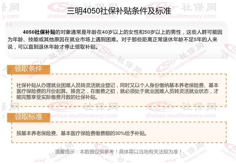 2024三明灵活就业4050社保补贴是一项面向特定年龄段的就业困难人群的社会保险补贴。