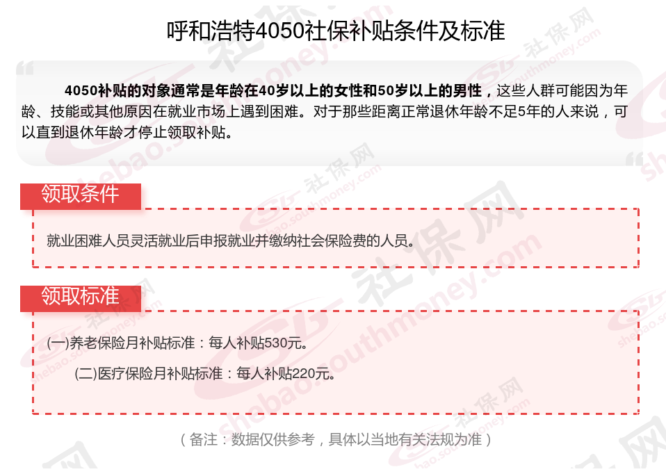 一、呼和浩特4050社保补贴标准及条件2023-2024年