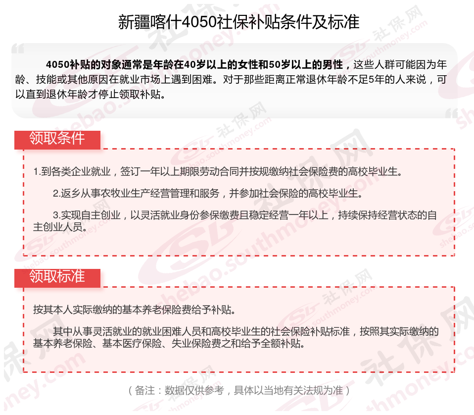 2024新疆喀什灵活就业4050社保补贴是一项面向特定年龄段的就业困难人群的社会保险补贴。