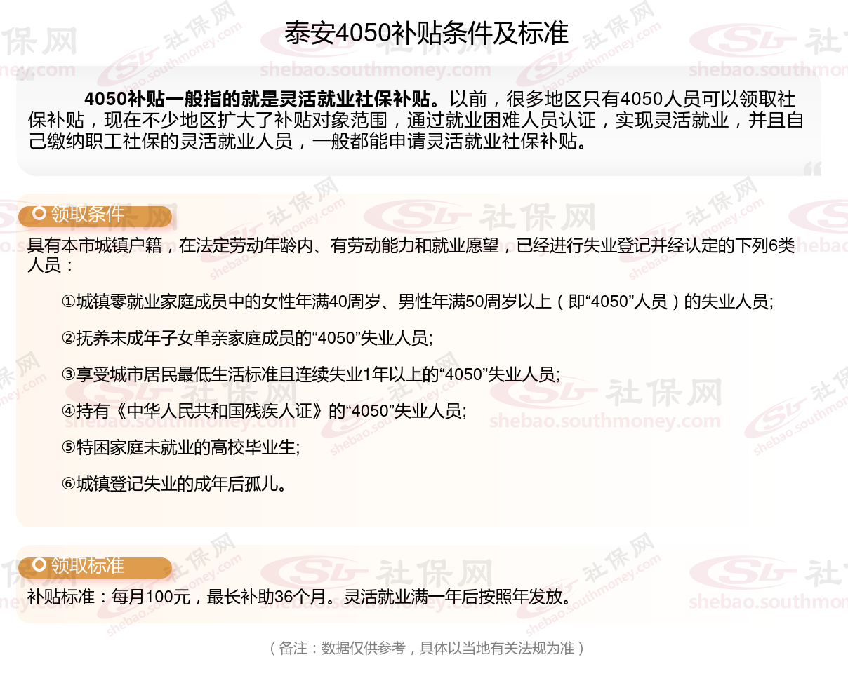 一、泰安4050社保补贴标准及条件2023-2024年